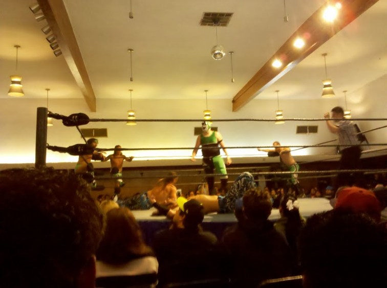 Also, unlike WWE, there is far less menacing glares and a lot more action. Each wrestler has a few signature moves, but mainly each bout is characterized by a lot of rope bouncing and flipping with oversized chops and masked punches. The refs get into the action as well–occasionally getting hit by a wild blow or over-dramatizing counts.