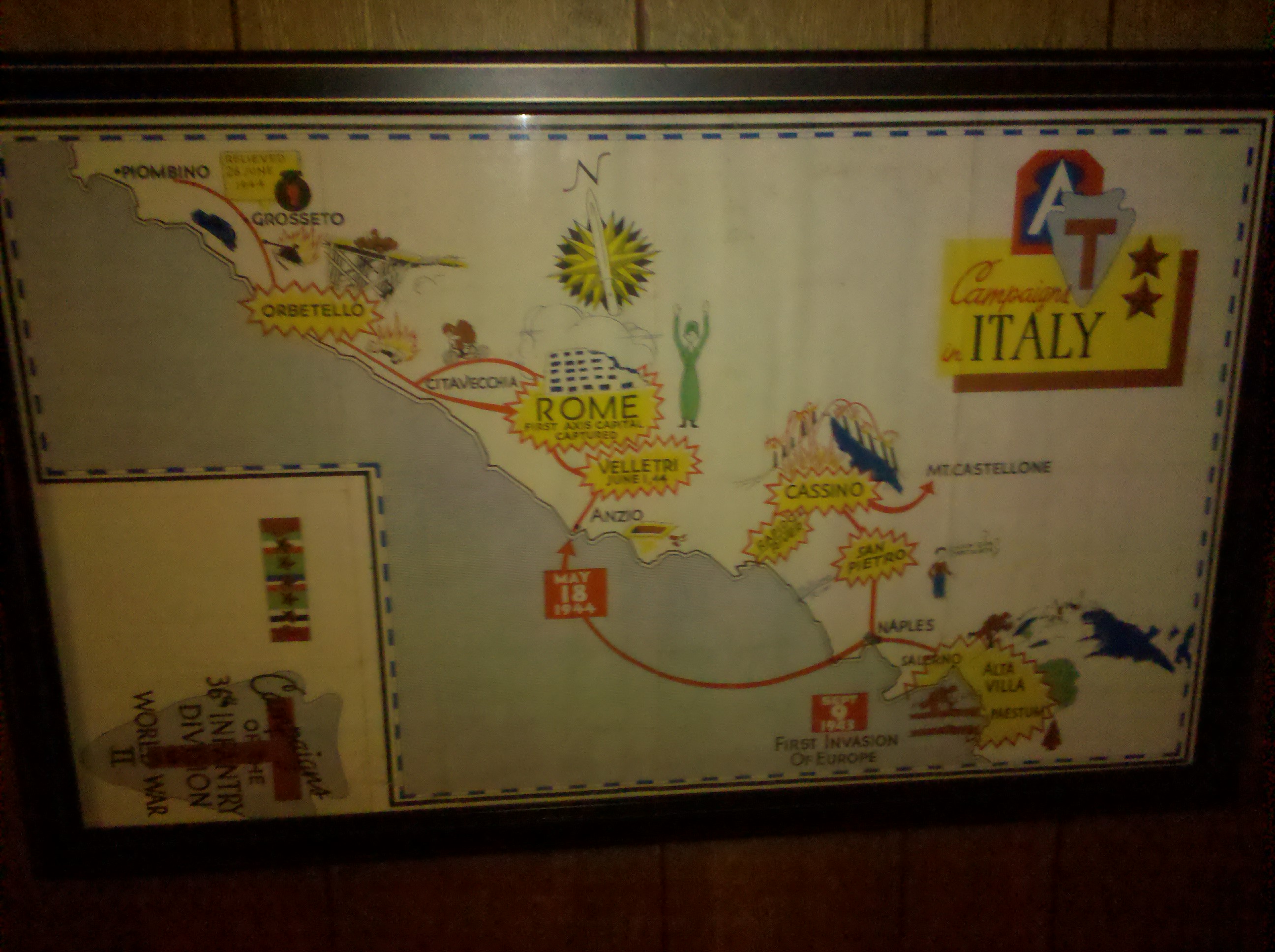 And, although it isn’t a photograph, I always have to pay a visit to the map of the 36th Infantry Division’s progress in World War II. Three of my great uncles served in the war, two of them in the 36th and one in the air force.
