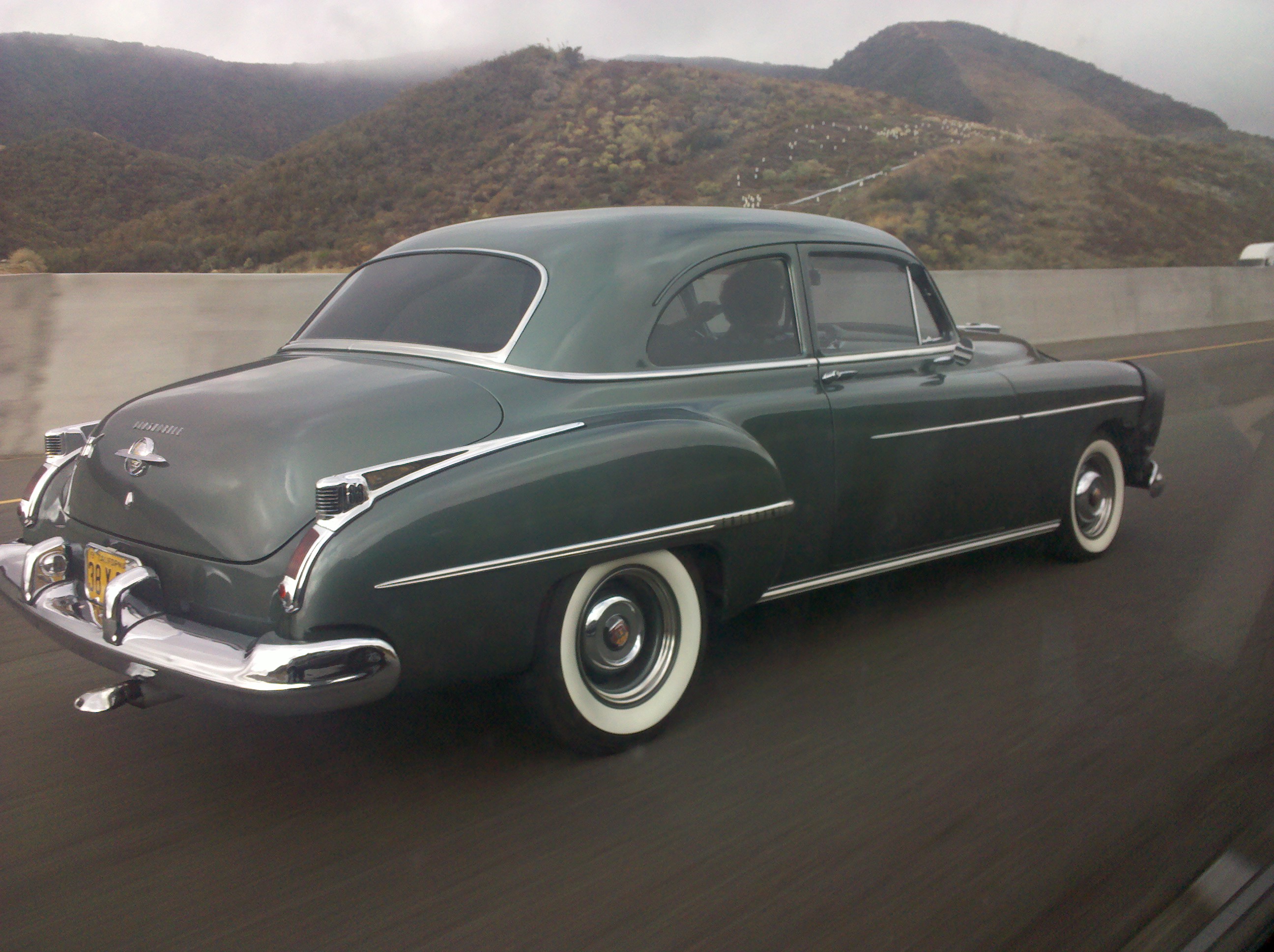 (One of a parade of vintage cars we saw cruising over the Grape Vine)